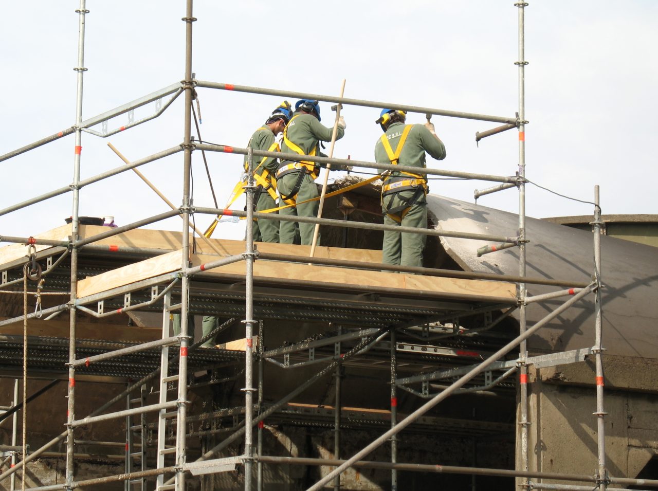 Demolición de las cáscaras y retiro del material. Colocación de cubierta con chapas de fibrocemento. Desmontaje de la plataforma de protección.