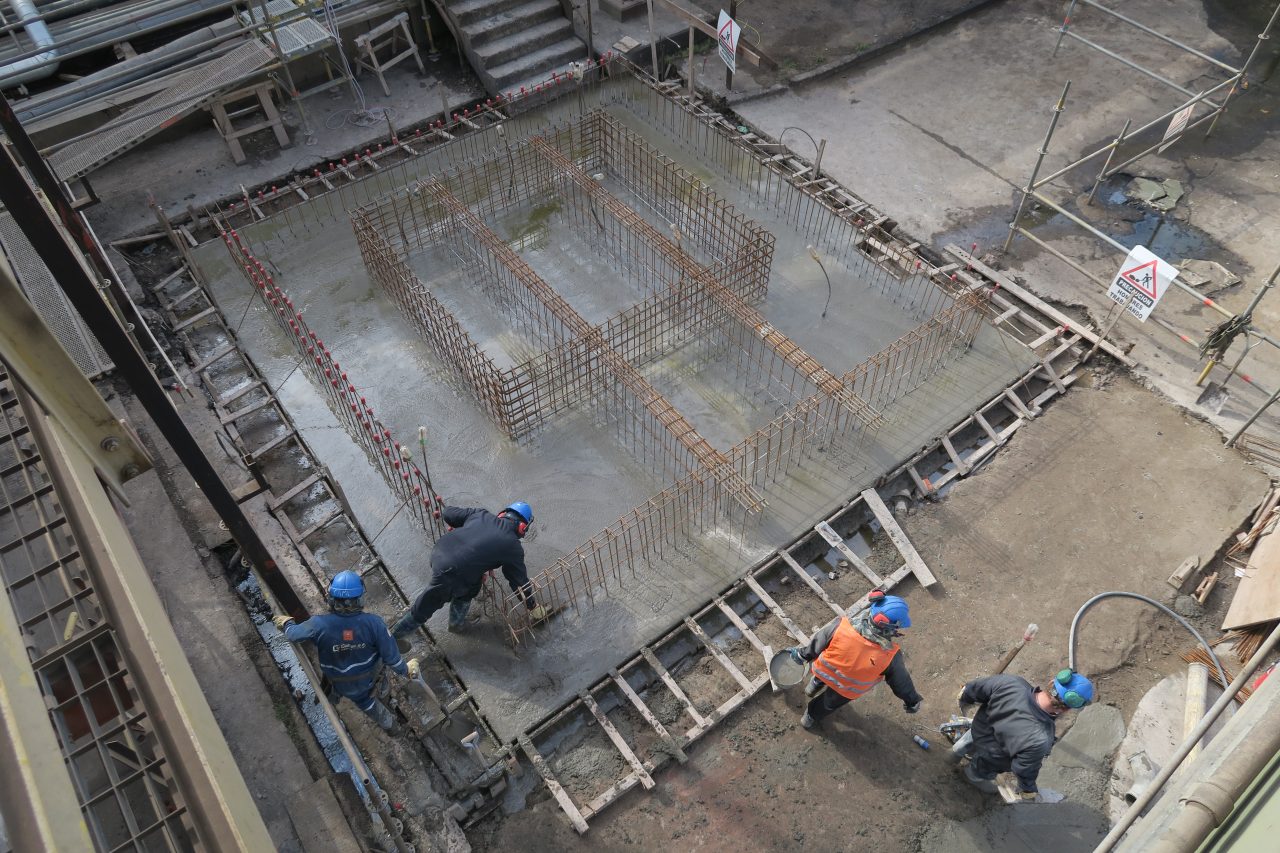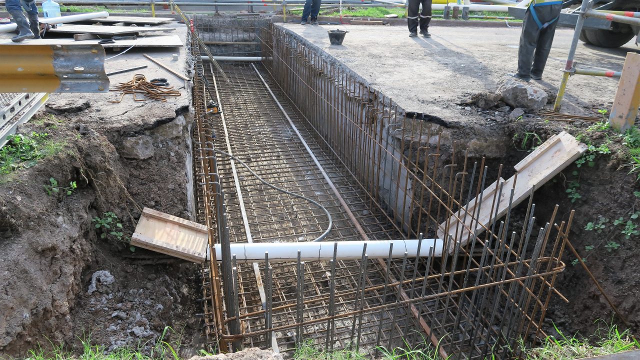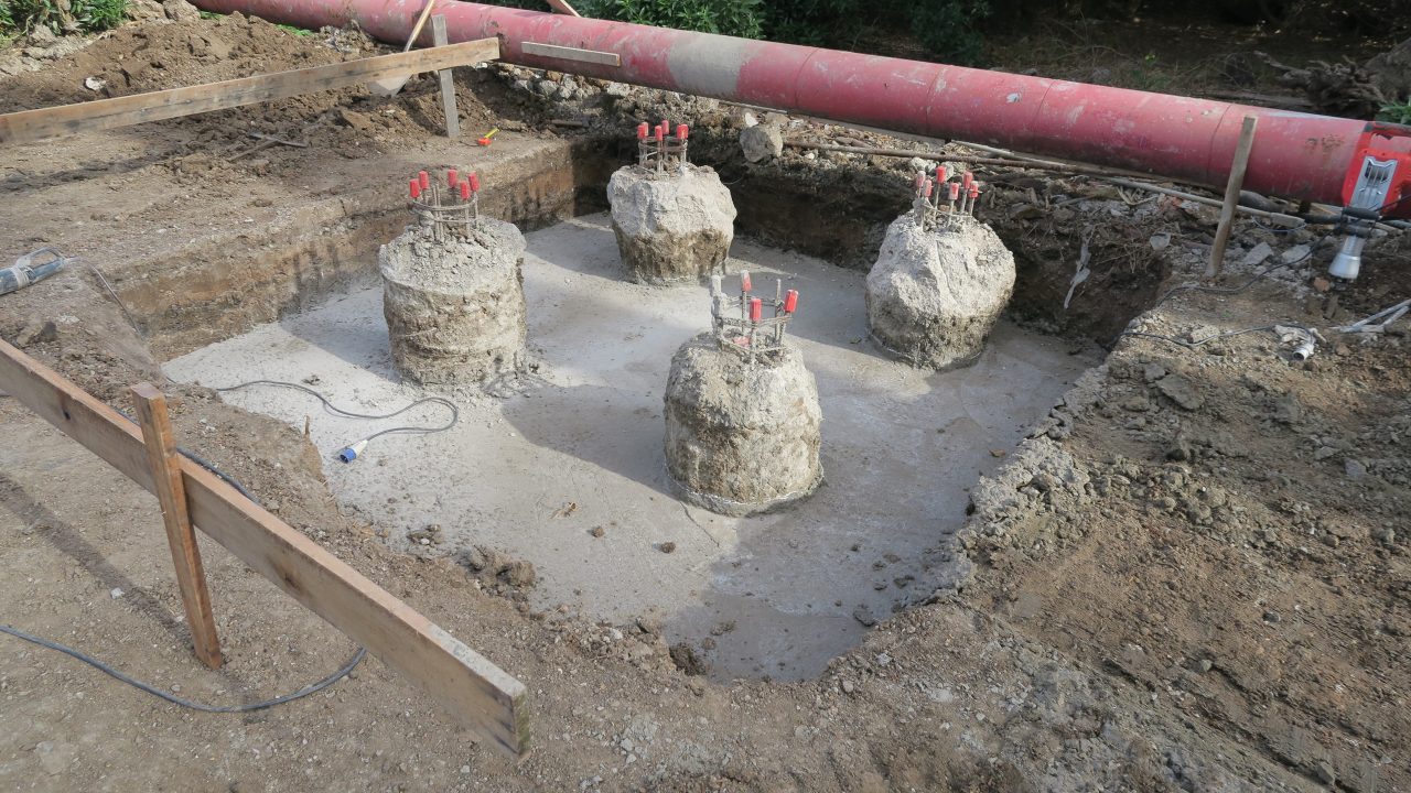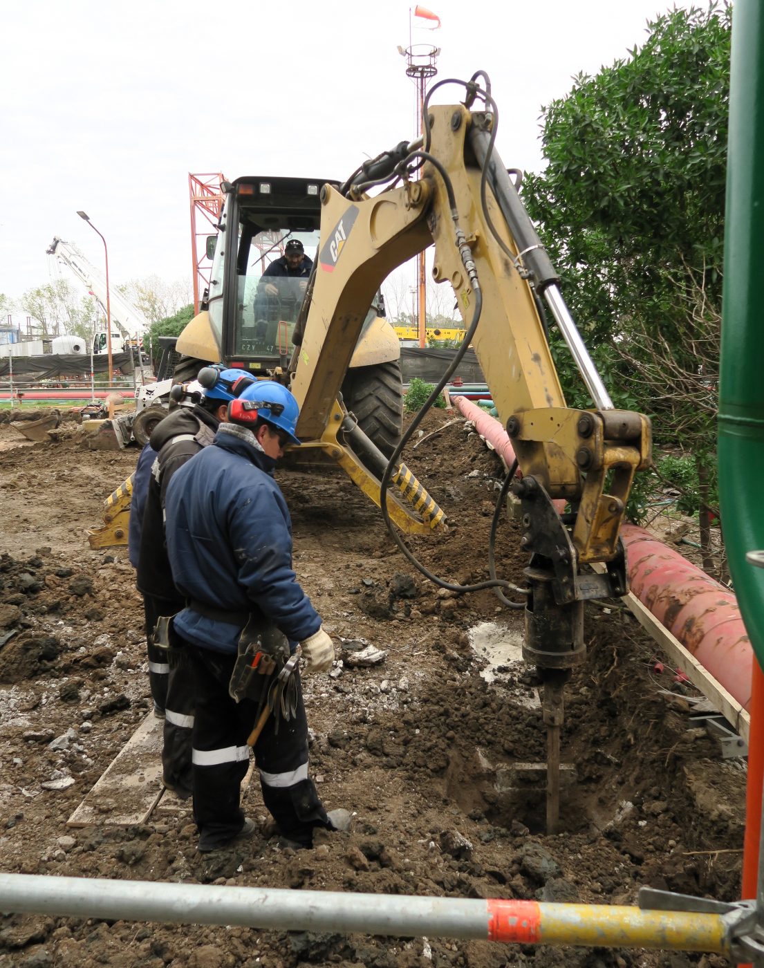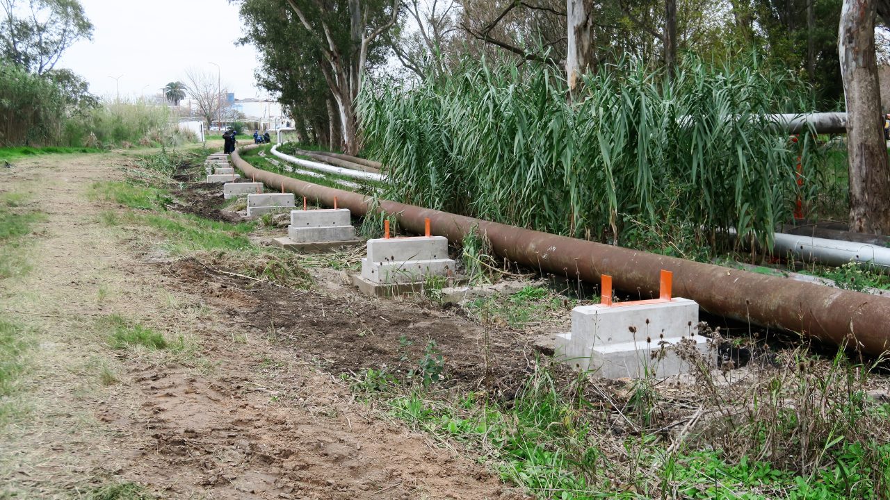 Intervención sobre línea de agua de enfriamiento – Química: Sleepers y bases de fundación para el montaje de estructuras metálicas (1.4 tn cada una) capaz de soportar el paso de una nueva cañería de 36“ hacia la torre de enfriamiento.