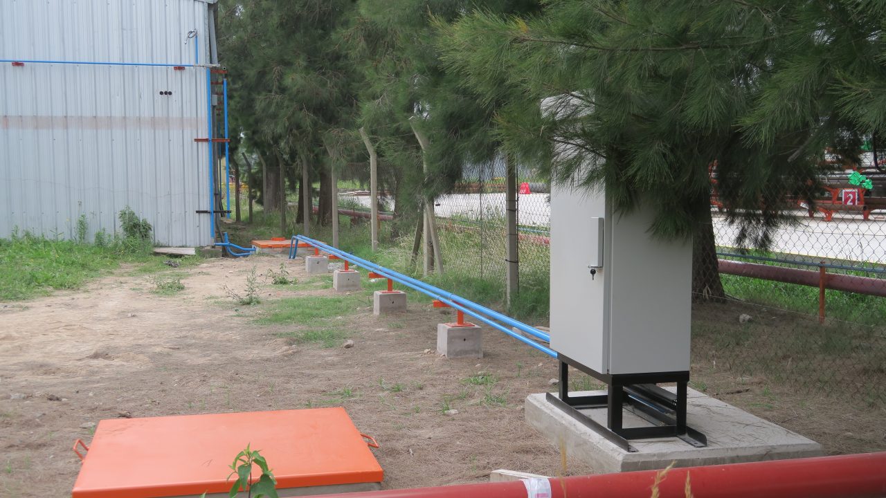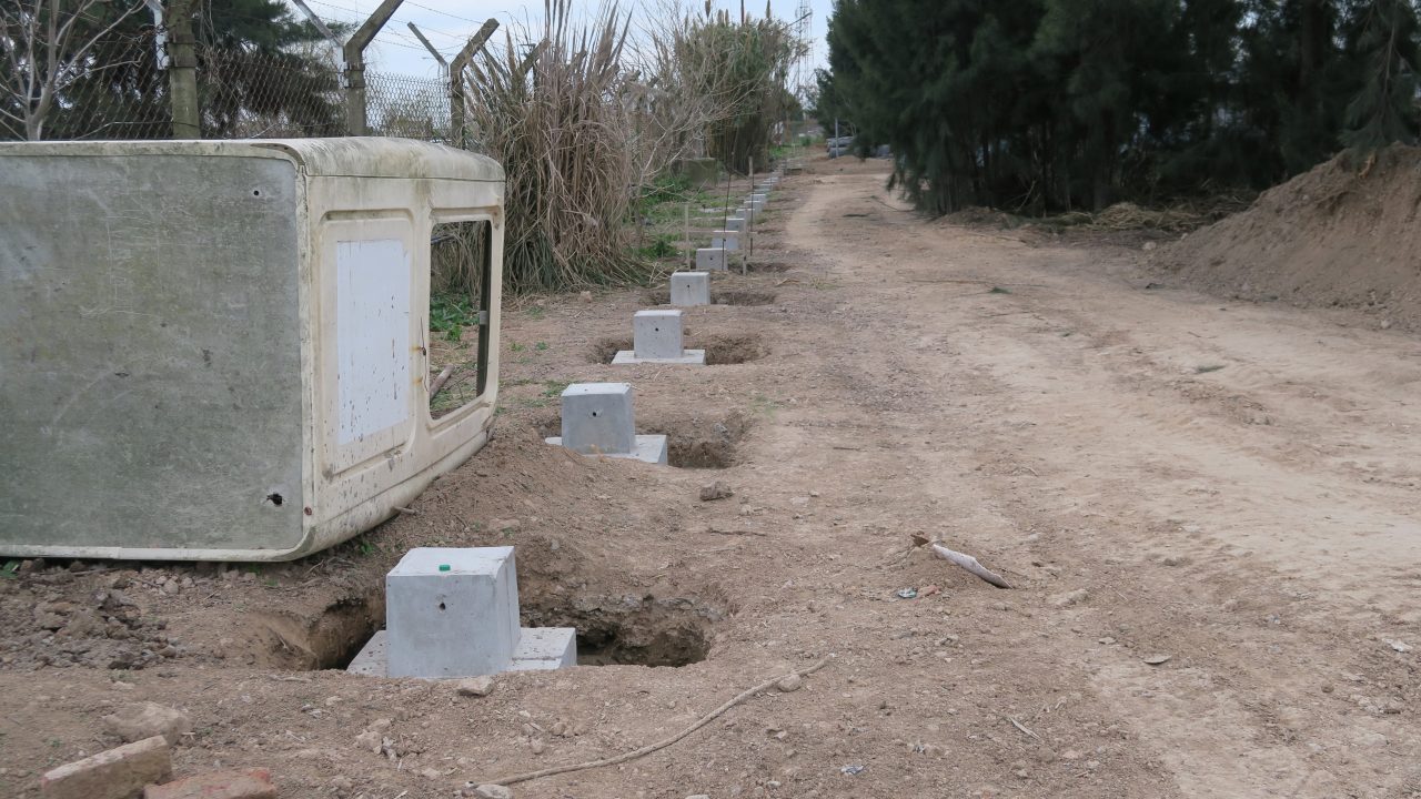 Instalación Cámaras de Vigilancia en Almacenes de Química: 105 sleepers de hormigón armado con soportes metálicos para cañería conduit eléctrica, cruces de calle, tendido de 1.900 mts de fibra óptica mutimodo de 12 hilos, cables de potencia y cables de señal.